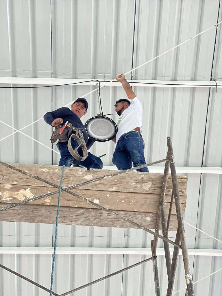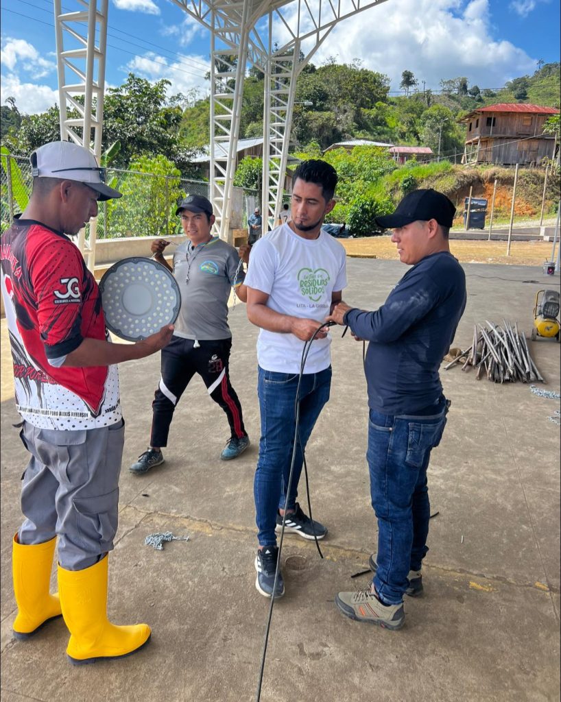El día de ayer conjuntamente con el equipo de Gad Lita, hemos instalado la iluminación en la cancha de uso múltiple bajo la cubierta recién construida, un espacio que pronto inauguraremos oficialmente para el disfrute de todos.